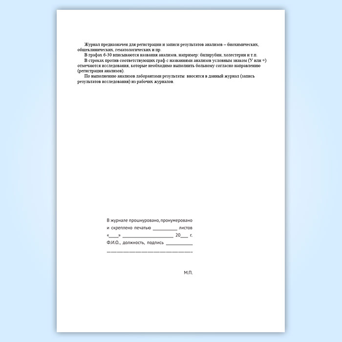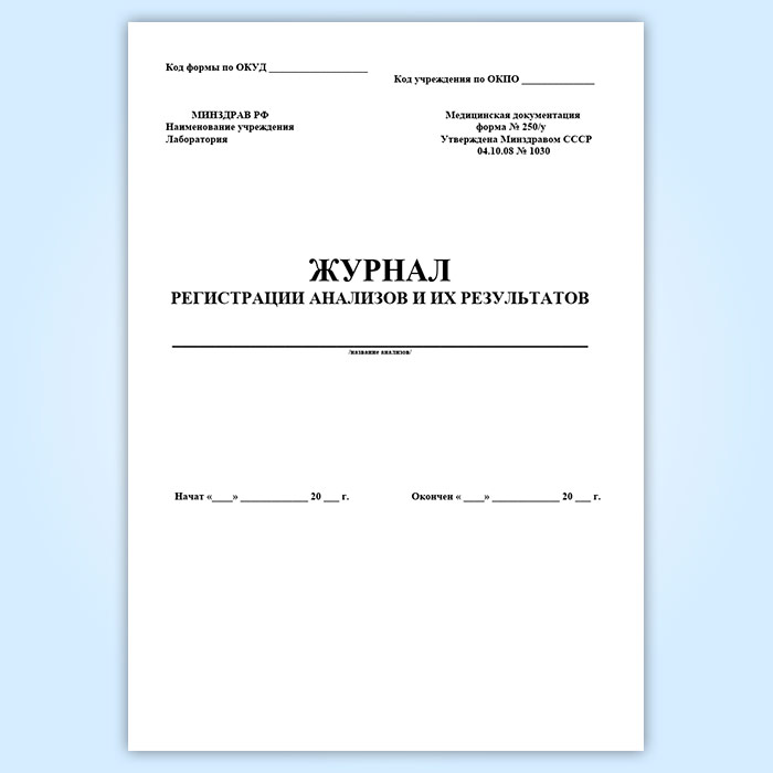 Журнал регистрации анализов и их результатов (форма 250/у) в Тюмени купить