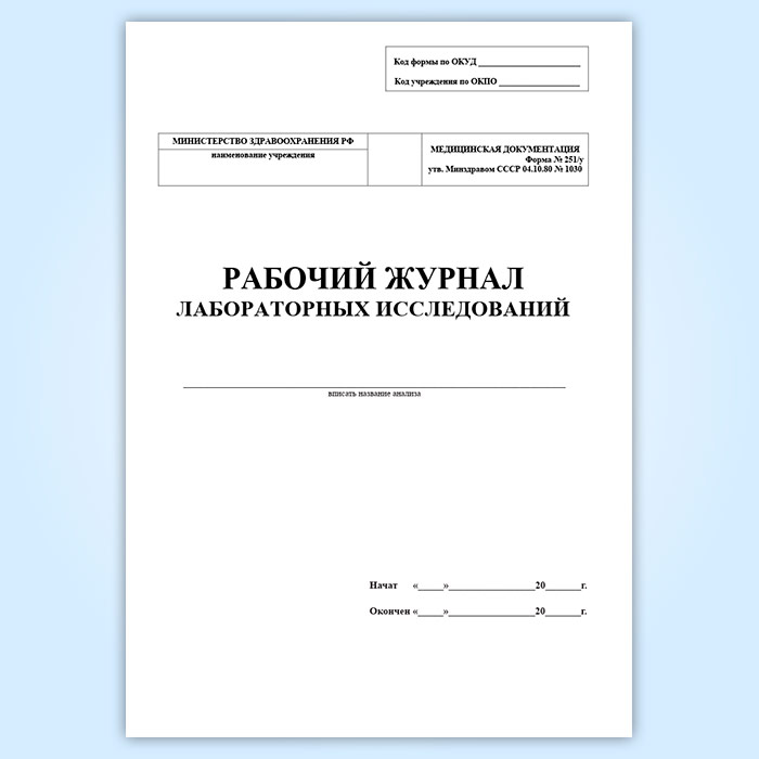 Рабочий журнал лабораторных исследований (форма 251/у) в Тюмени купить