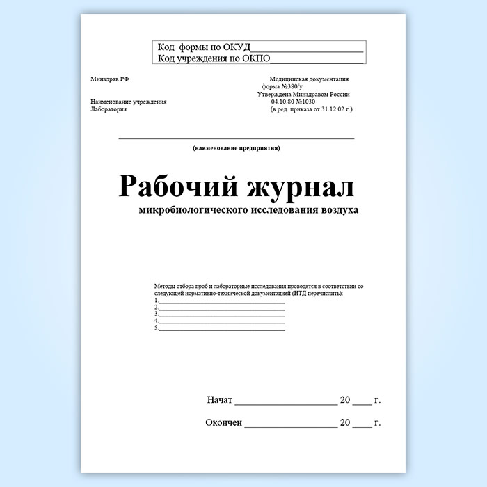 Рабочий журнал микробиологического исследования воздуха (форма 380/у) в Тюмени купить
