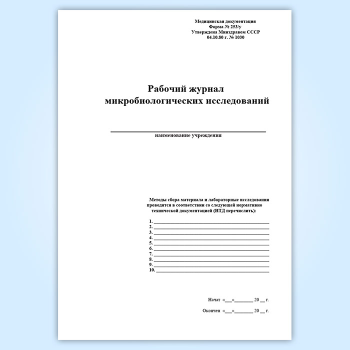Рабочий журнал микробиологических исследований (форма 253/у) в Тюмени купить