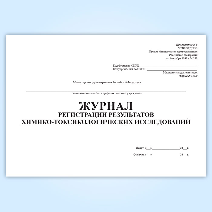 Журнал регистрации результатов химико-токсикологических исследований (форма 453у-06) в Тюмени купить