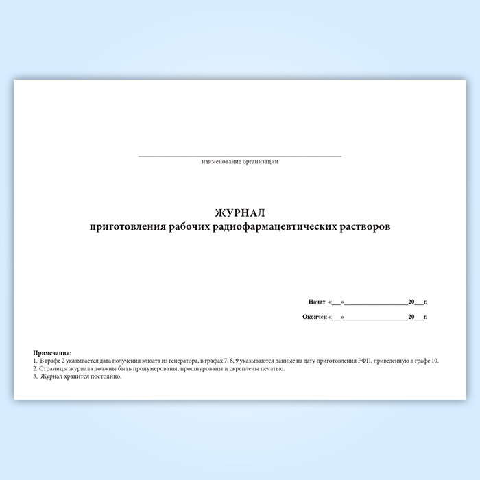 Журнал приготовления рабочих радиофармацевтических растворов в Тюмени купить