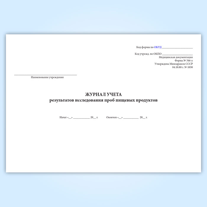 Журнал учета результатов исследования проб пищевых продуктов (форма 346/у) в Тюмени купить