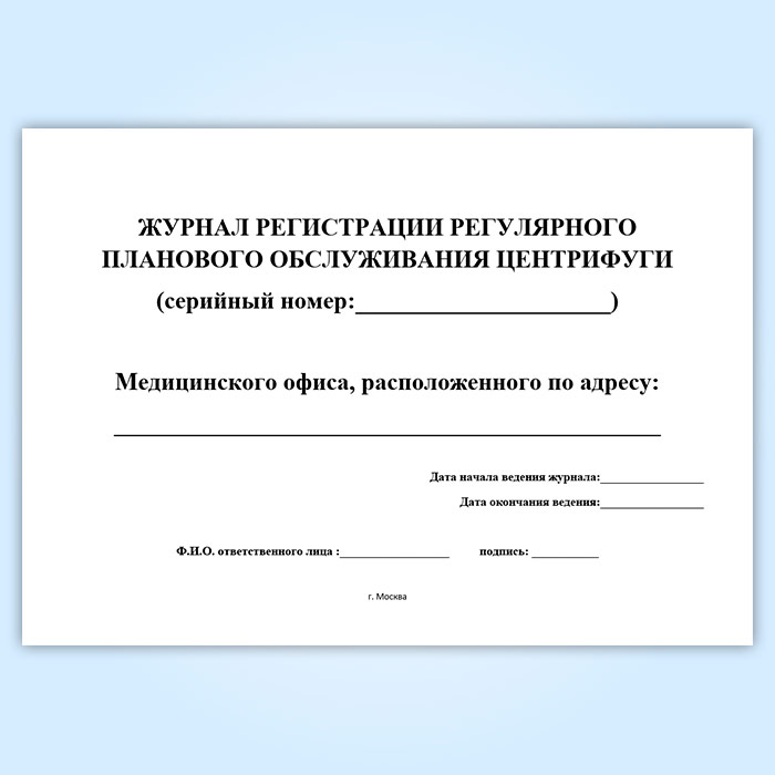 Журнал регистрации регулярного планового обслуживания центрифуги в Тюмени купить