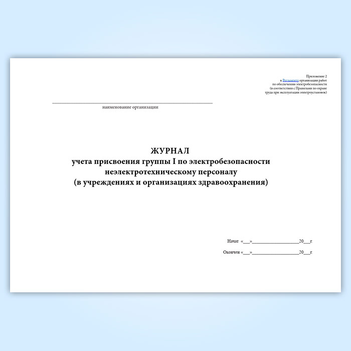 Журнал учета присвоения группы 1 по электробезопасности неэлектротехническому персоналу (в учреждениях и организациях здравоохранения) в Тюмени купить