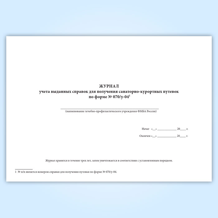 Журнал учета выданных справок для получения санаторно-курортных путевок (форма № 070/у-04) в Тюмени купить
