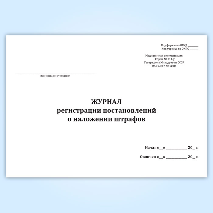 Журнал регистрации постановлений о наложении штрафов (форма 311-у) в Тюмени купить