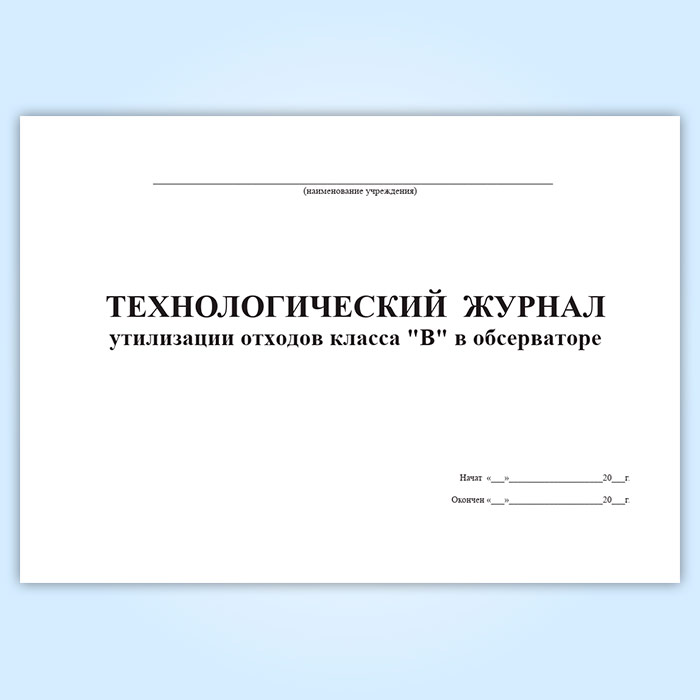 Технологический журнал утилизации отходов класса «В» в обсерваторе в Тюмени купить