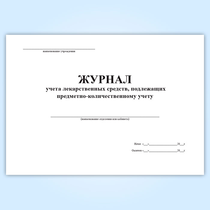 Журнал учета лекарственных средств, подлежащих предметно-количественному учету в Тюмени купить