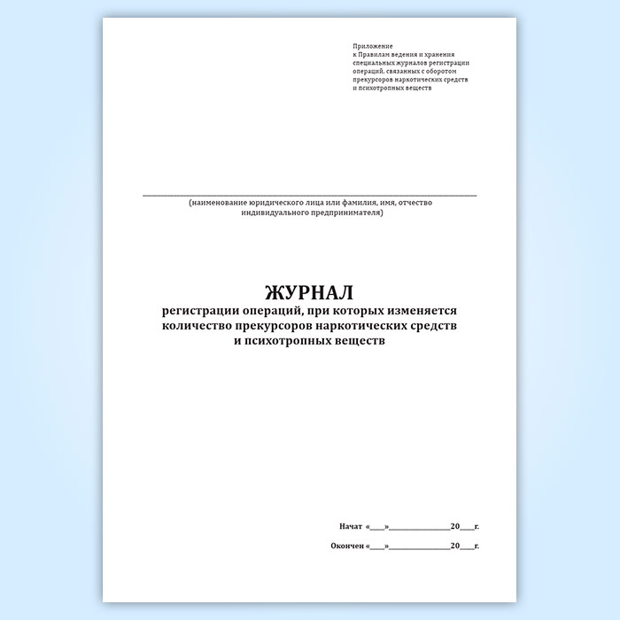 Журнал регистрации операций, при которых изменяется количество прекурсоров наркотических средств и психотропных веществ в Тюмени купить