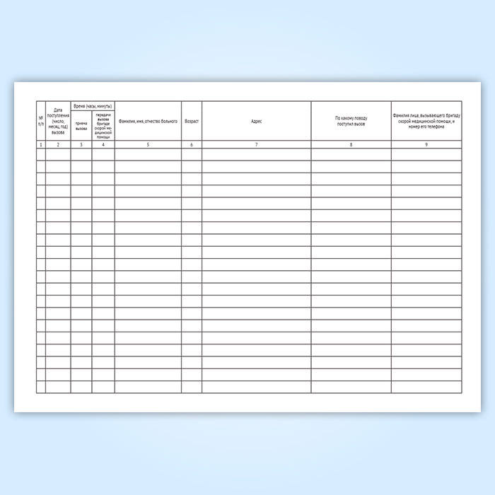 Журнал записи вызовов скорой медицинской помощи (Форма109/у) в Тюмени купить