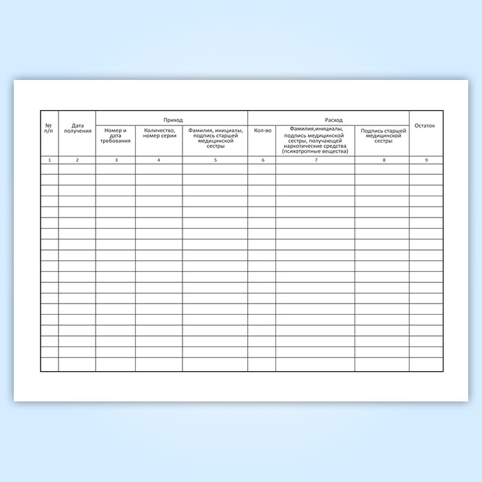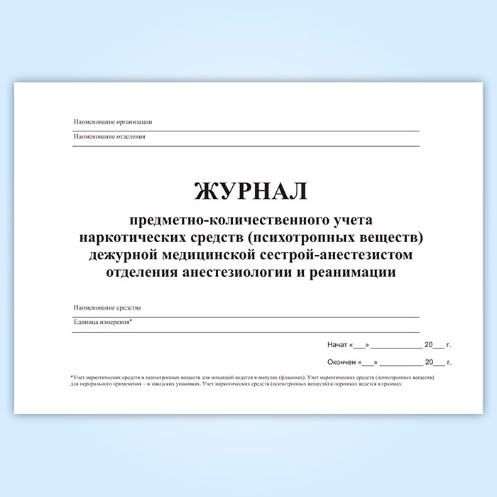 Журнал предметно-количественного учета наркотических средств (психотропных веществ) дежурной медицинской сестрой-анастезистом отделения анастезиологии и реанимации в Тюмени купить