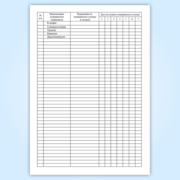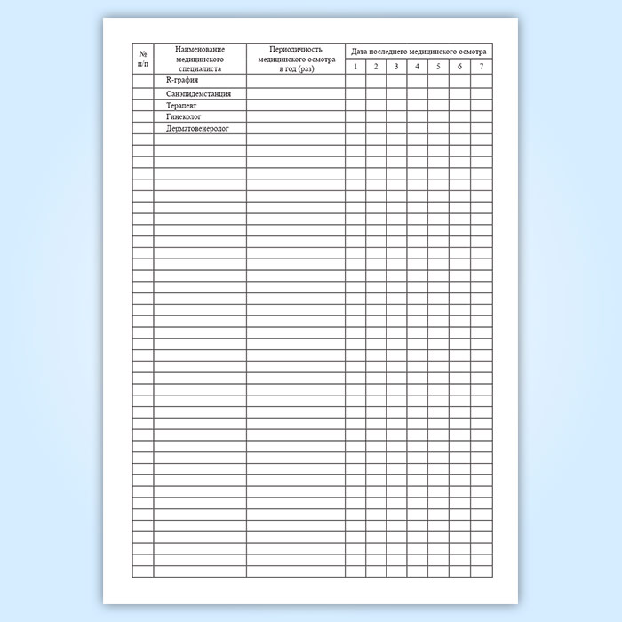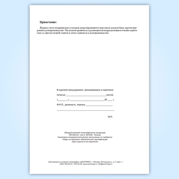 Журнал учета медицинских осмотров декретированного персонала в Тюмени купить
