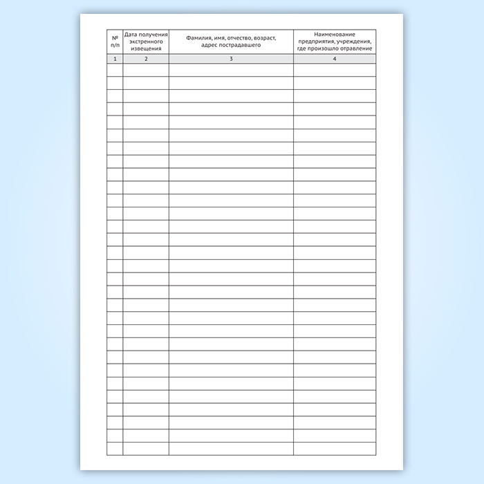 Журнал регистрации экстренных извещений о пищевых и профессиональных отравлениях (форма № 361/у) в Тюмени купить