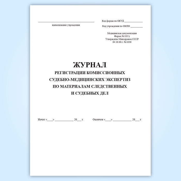 Журнал регистрации комиссионных судебно-медицинских экспертиз по материалам следственных и судебных дел (форма 183/у) в Тюмени купить