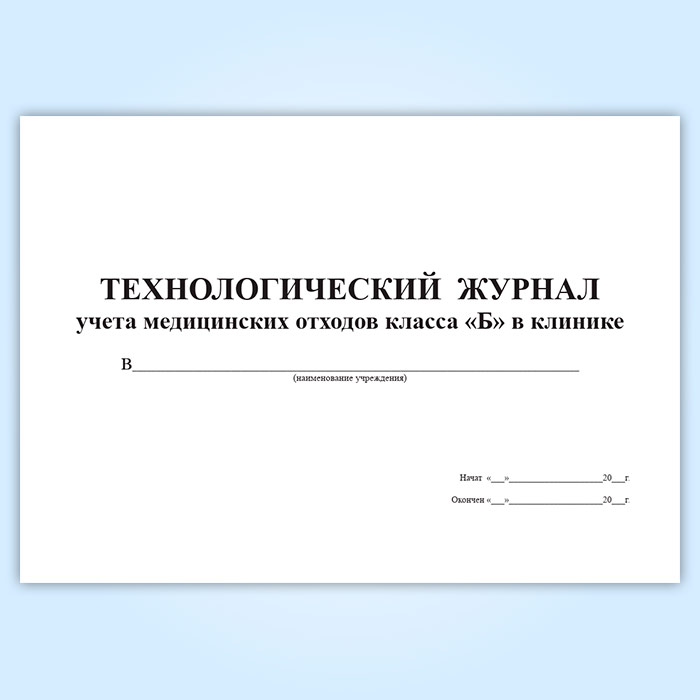Технологический журнал учета медицинских отходов класса Б в клинике в Тюмени купить