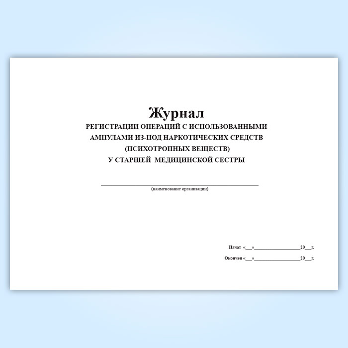 Журнал регистрации операций с использованными ампулами из-под наркотических средств (психотропных веществ) у старшей медицинской сестры в Тюмени купить