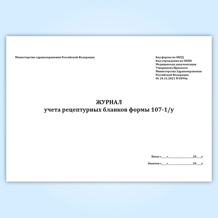 Журнал учета рецептурных бланков формы 107-1/у (новый) (Приказ Минздрава России от 24.11.2021 N 1094н) в Тюмени купить