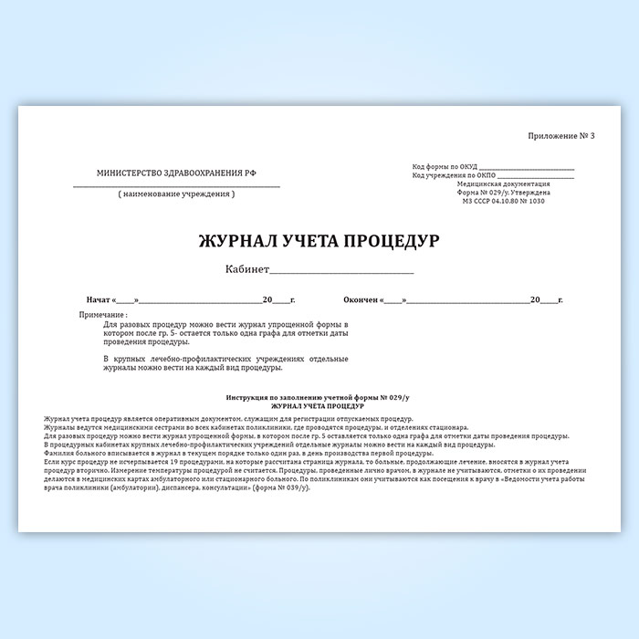 Журнал учета процедур (форма № 029/у) в Тюмени купить