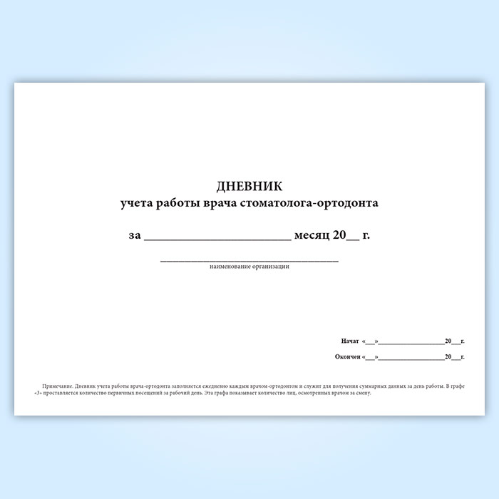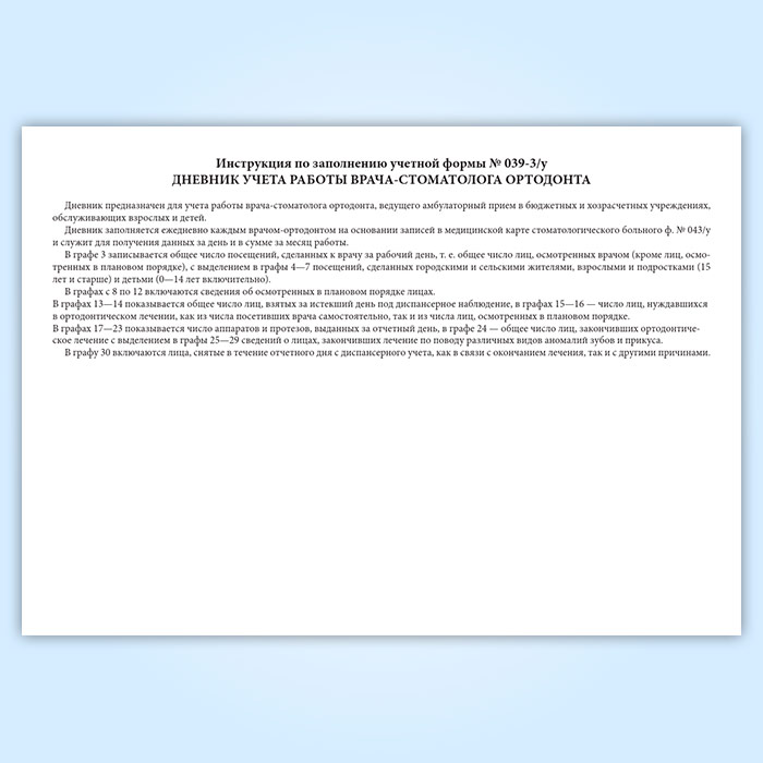 Дневник учета работы врача стоматолога-ортодонта (форма 039-3у) в Тюмени купить
