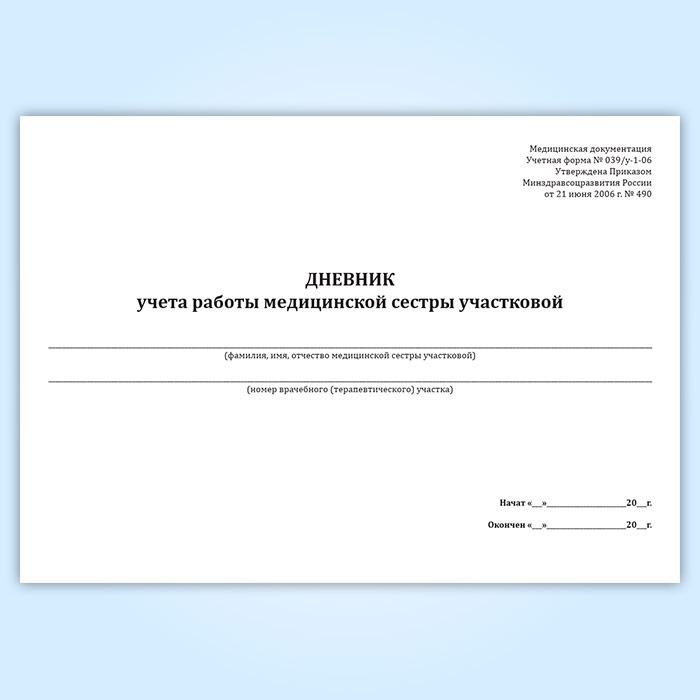 Дневник учета работы медицинской сестры участковой (форма 039/у-1-06) в Тюмени купить