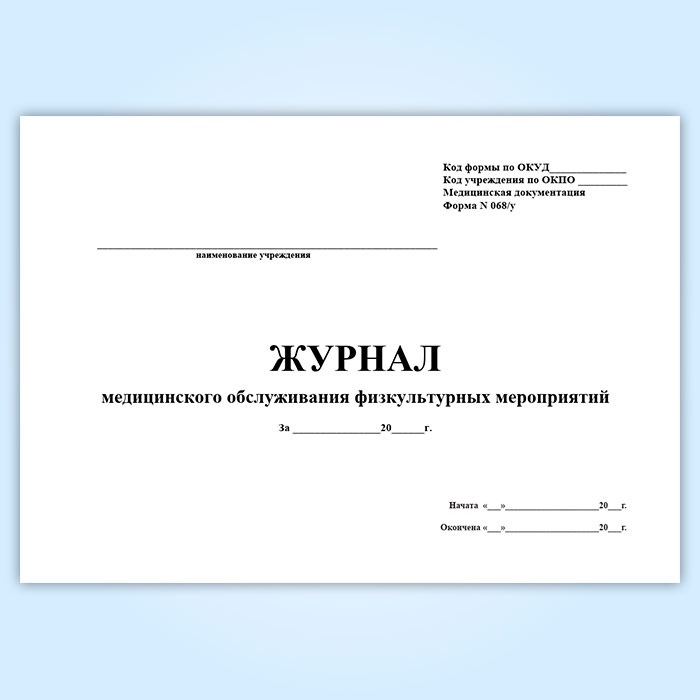 Журнал медицинского обслуживания физкультурных мероприятий (форма 068/у) в Тюмени купить