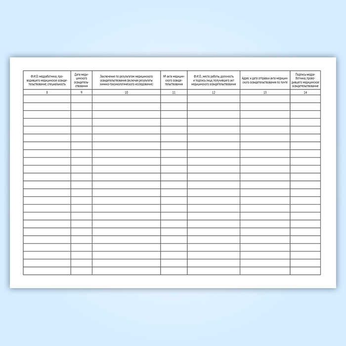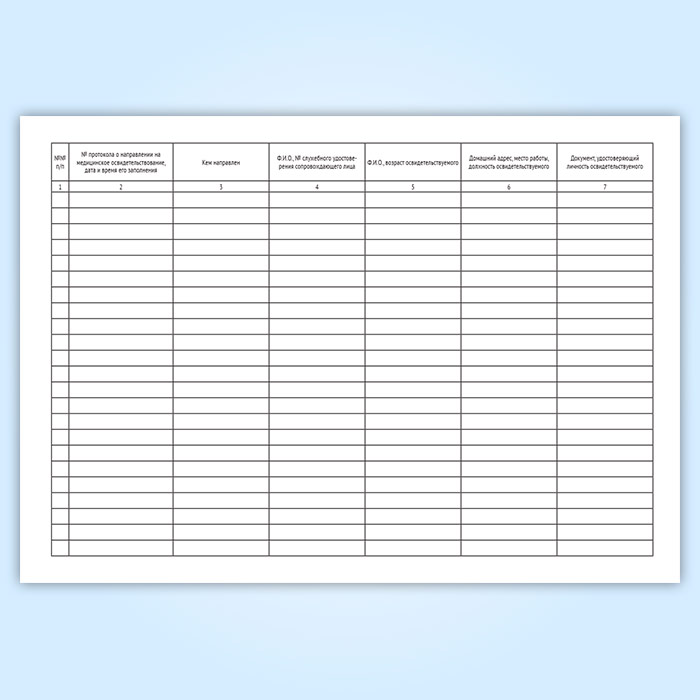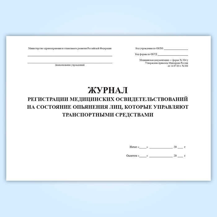Журнал регистрации медицинских освидетельствований на состояние опьянения лиц, которые управляют транспортными средствами (форма 304/у) в Тюмени купить