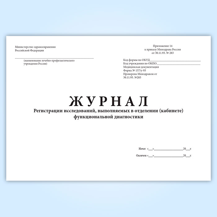Журнал регистрации исследований, выполняемых в отделении (кабинете) функциональной диагностики (форма 157/у-93) в Тюмени купить