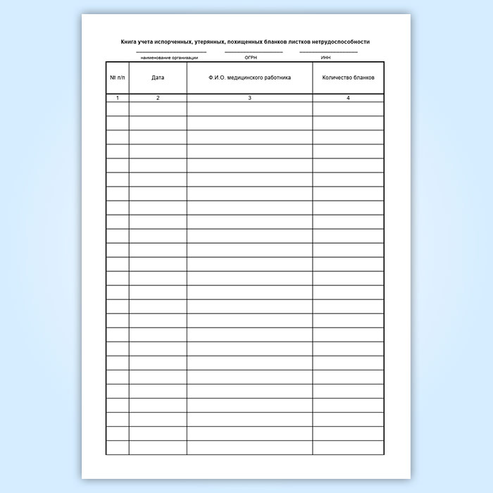Книга учета испорченных, утерянных, похищенных бланков листков нетрудоспособности в Тюмени купить