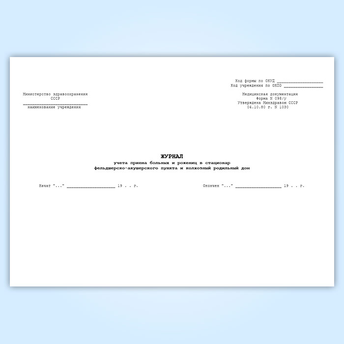 Журнал учета приема больных и рожениц в стационар фельдшерско-акушерского пункта, колхозного родильного дома (форма 098/у) в Тюмени купить