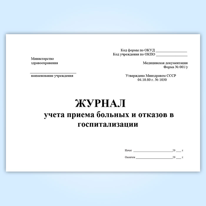 Журнал учета приема больных и отказов в госпитализации (форма 001/у) в Тюмени купить