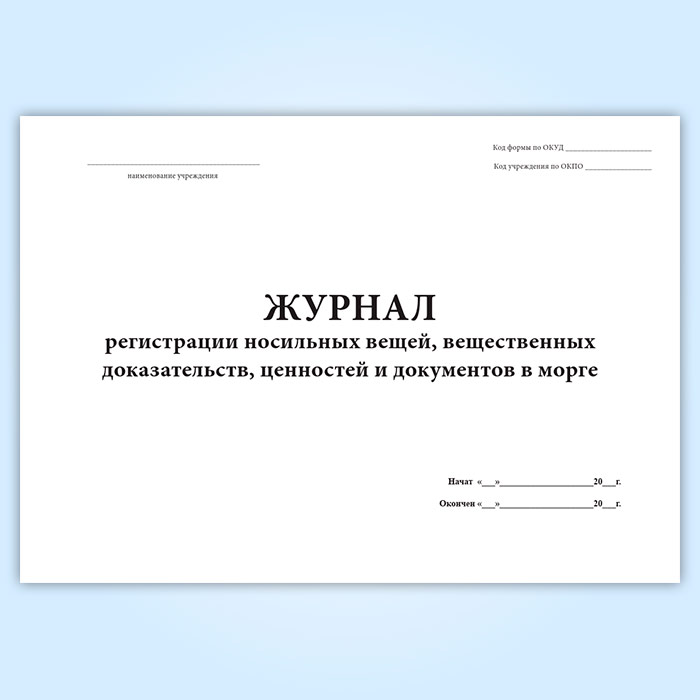 Журнал регистрации носильных вещей, вещественных доказательств, ценностей и документов в морге (форма 191/у) в Тюмени купить