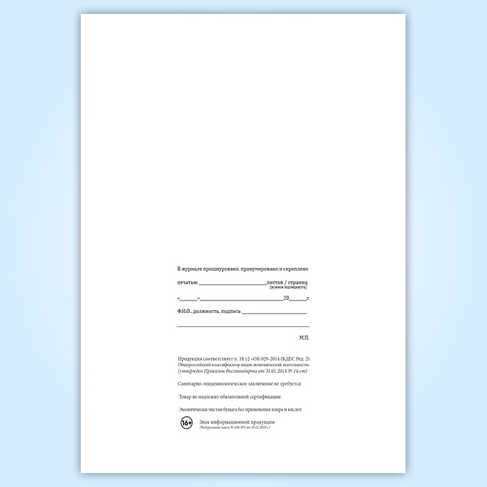 Вы получаете печатную продукцию прошнурованной и c местом для вашей печати в соответствии с действующими нормативными документами: