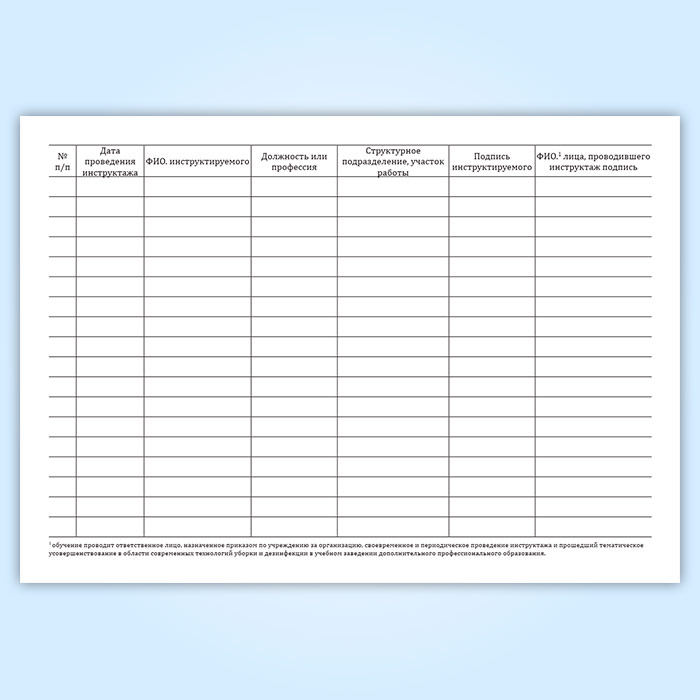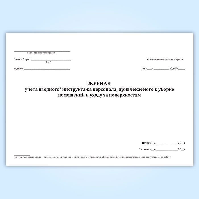 Журнал учета вводного инструктажа персонала, привлекаемого к уборке помещений и уходу за поверхностями в Тюмени купить