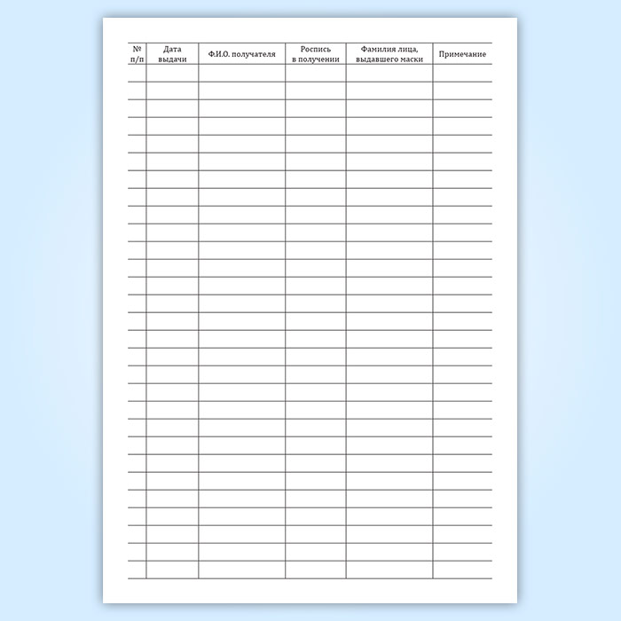 Журнал регистрации выдачи медицинских масок сотрудникам в Тюмени купить