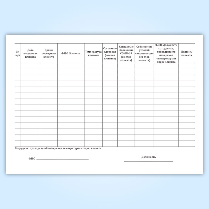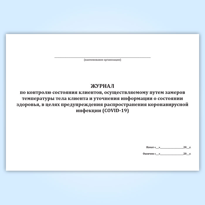 Журнал по контролю состояния клиентов, осуществляемому путем замеров температуры тела клиента и уточнения информации о состоянии здоровья, в целях предупреждения распространения коронавирусной инфекции (COVID-19) в Тюмени купить