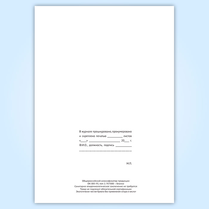 Вы получаете печатную продукцию прошнурованной и c местом для вашей печати в соответствии с действующими нормативными документами: