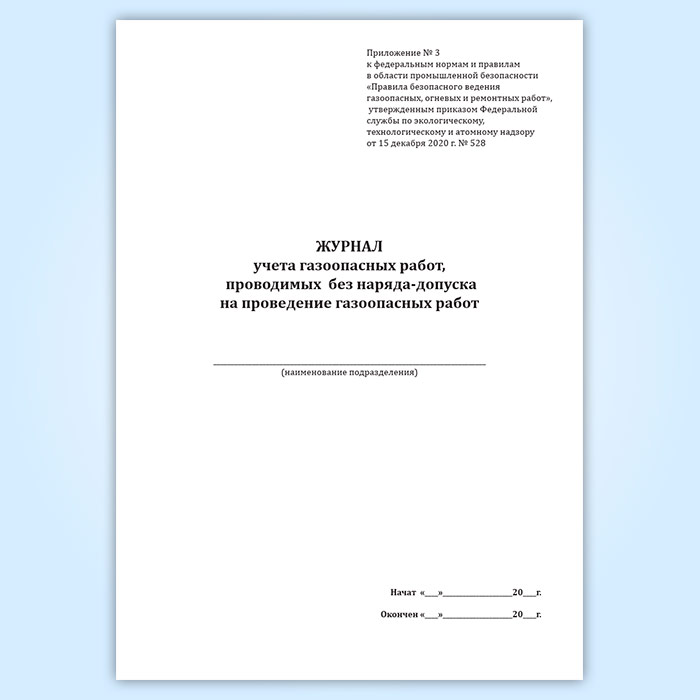 Журнал учета газоопасных работ, проводимых без наряда-допуска на проведение газоопасных работ в Тюмени купить