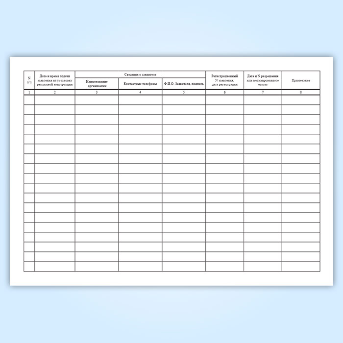Журнал учета заявлений на установку рекламных конструкций в Тюмени купить