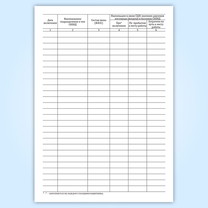 Журнал учета работающих звеньев газодымозащитной службе (ГДЗС) в Тюмени купить