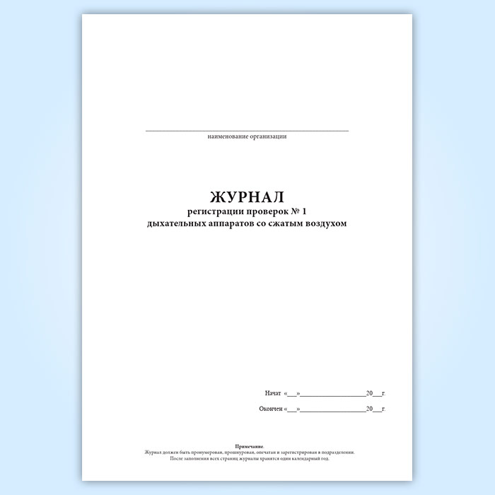 Журнал регистрации проверок N 1 дыхательных аппаратов со сжатым воздухом в Тюмени купить
