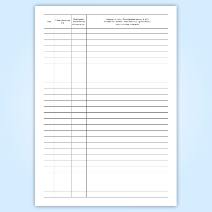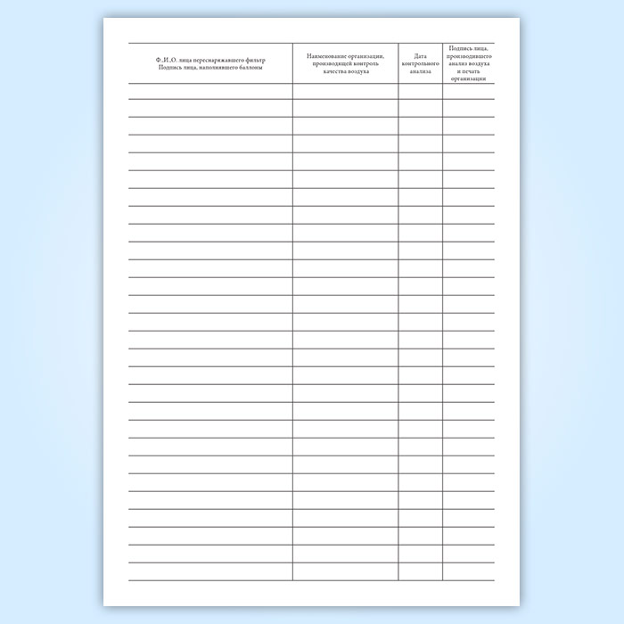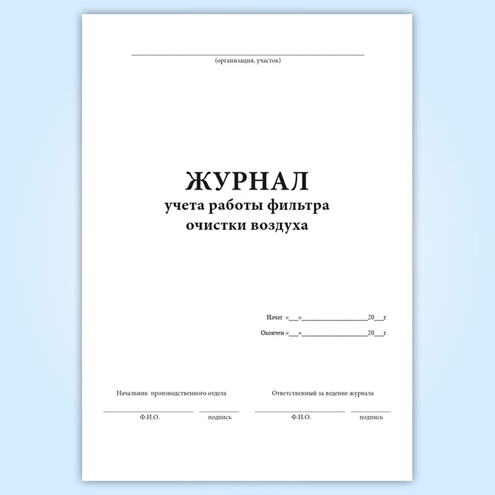 Журнал учета работы фильтра очистки воздуха в Тюмени купить