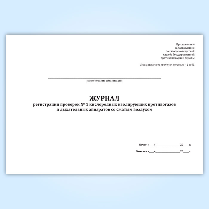 Журнал регистрации проверок № 1 кислородных изолирующих противогазов и дыхательных аппаратов со сжатым воздухом в Тюмени купить