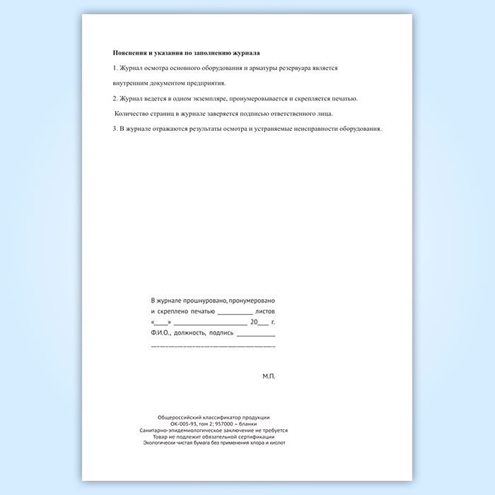Журнал осмотра основного оборудования и арматуры резервуара (нефтепродукты) в Тюмени купить