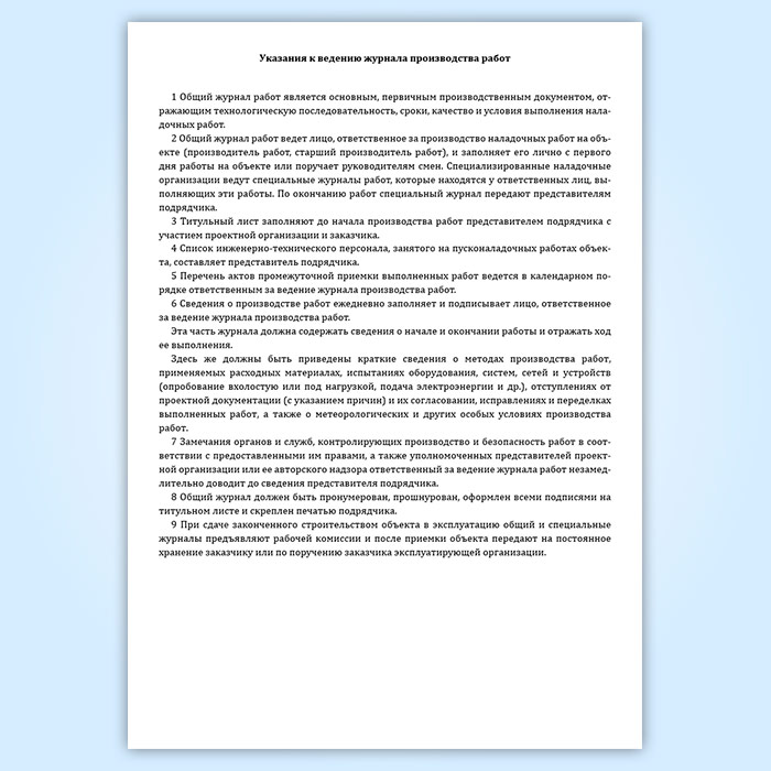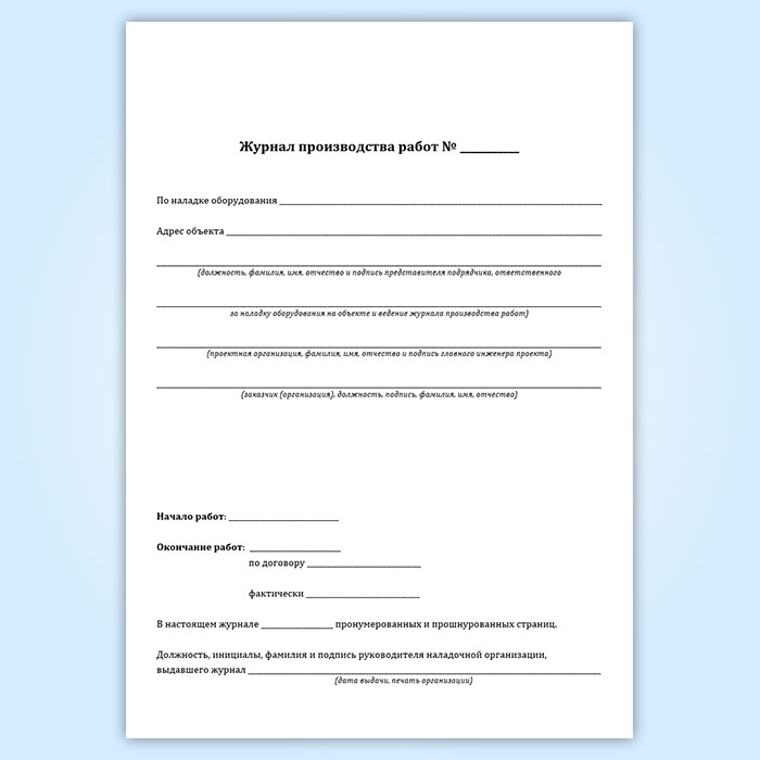 Журнал производства работ по наладке оборудования на объекте (СП 245.1325800.2015) в Тюмени купить