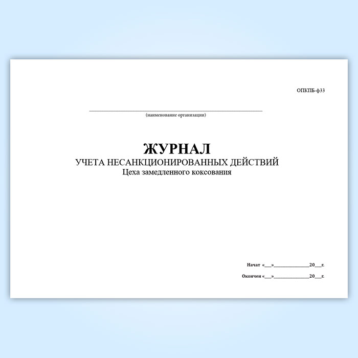 Журнал учета несанкционированных действий цеха замедленного коксования (ОПКПБ-ф33) в Тюмени купить