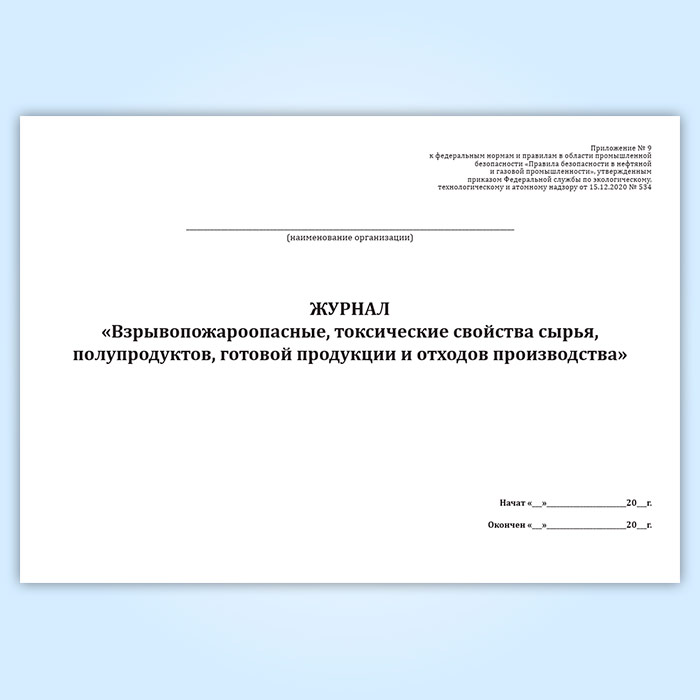 Журнал «Взрывопожароопасные, токсические свойства сырья, полупродуктов, готовой продукции и отходов производства» в Тюмени купить