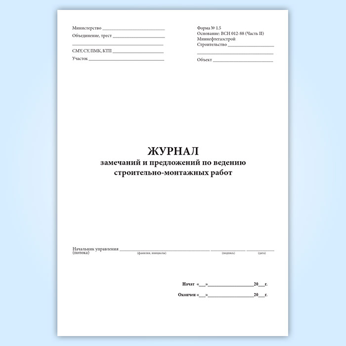 Журнал замечаний и предложений по ведению строительно-монтажных работ в Тюмени купить