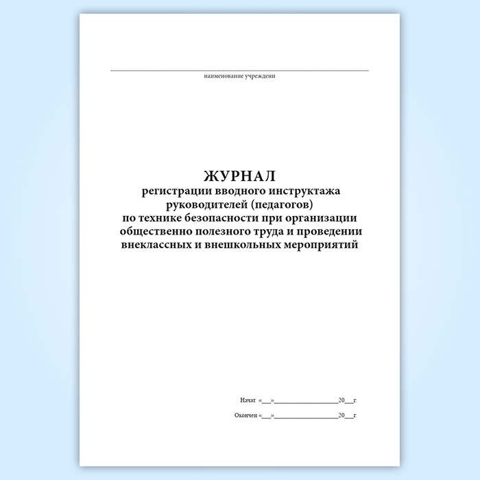 Журнал регистрации вводного инструктажа руководителей (педагогов) по технике безопасности при организации общественно полезного труда и проведении внеклассных и внешкольных мероприятий в Тюмени купить