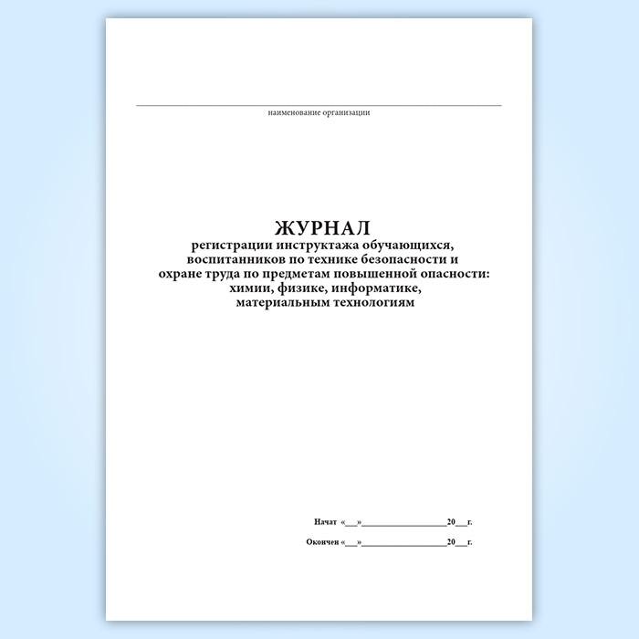 Журнал регистрации инструктажа обучающихся, воспитанников по технике безопасности и охране труда по предметам повышенной опасности: химии, физике, информатике, материальным технологиям в Тюмени купить